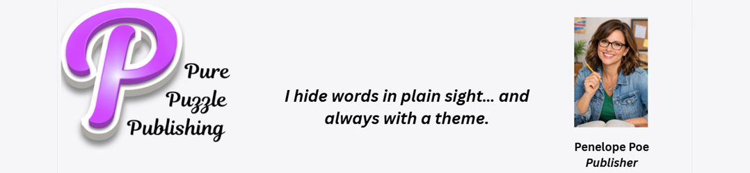 penelope@purepuzzlepublishing.com Hi, I’m Penelope Poe and I love puzzles! When I’m not creating puzzles, and there’s plenty more coming, I’m probably sipping coffee and thinking of new themed collections. I hope you enjoy my puzzle books. Follow me on Facebook. Amazon Barnes & Noble Amazon Barnes & Noble Amazon Coming to B & N